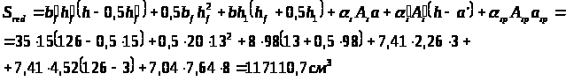 I>red> =3378662,2 (см4); W>red> =48266,6 (см3); W>pl> =72400 (см3); A>s>> >=2,26 (см2); A>sp>>= >7,64 (см2); A’>s>> =>4,52> >(см2);