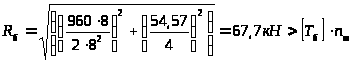 Проверяем равнодействующее усилие в максимально нагруженном болте