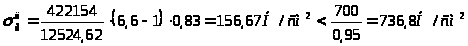 Напряжение смятия в торцах ригеля при = 14о: