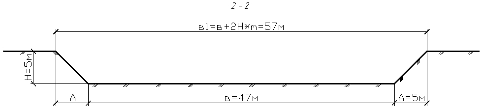 При одностороннем движении ширину траншеи по низу принимают равной Вт = Вт1 = 4,5 м, а при двухстороннем движении ширину траншеи по низу, принимают равной: Вт = ВТ2 =6 м.