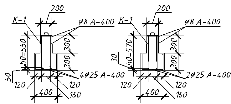 Для продольной рабочей арматуры ø25 A-400 (<ø22) принимаем поперечную арматуру ø8 A-400.