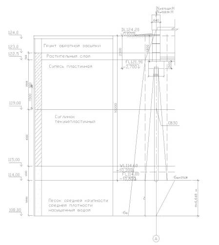 2-й слой – супесь, пластичная. Толщина слоя 3.5 м с коэффициентом пористости (е) равным 0,77 и с ненормируемым расчетным сопротивлением грунта (Ro), и может служить хорошим естественным основанием. (С глубины 119.00–120.00 м)