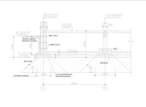 При наличие в здании подвала постоянные и временные нагрузки соответственно увеличиваются: На стену А – постоянные – на 14 и временные – 2 кН/м; на колонну Б – постоянные – на 65 и временные – 3 кН/м