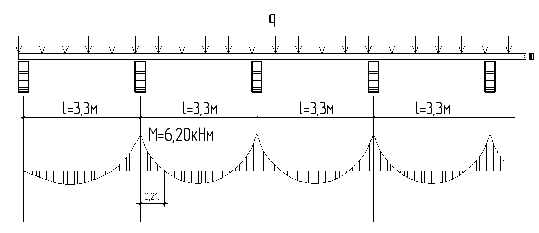 Расчетный изгибающий момент в сечении над средней опорой: