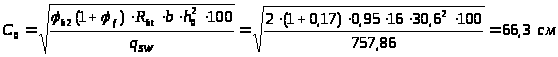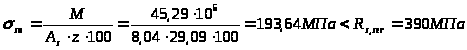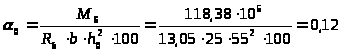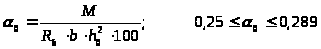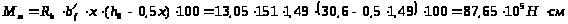 >М>>u>>2>> >>= >>R>>b>> >>∙ >>b>> >>· х ∙ (>>h>>0 >>– 0,5 · >>x>>) ∙ 100 = 13,05 · 25 · 5,69 ·(55 – 0,5 · 5,69) · 100 >>96,82 · 10>5>кН · м>