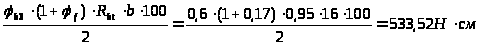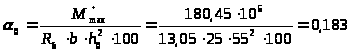 >М>>u>>1>> >>= >>R>>b>> >>∙ >>b>> >>· х ∙ (>>h>>0 >>– 0,5 · >>x>>) ∙ 100 = 13,05 · 25 · 11,39 ·(55 – 0,5 · 11,39) · 100 = >>183,22 · 10>5>кН · м>