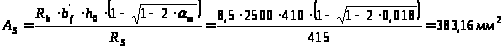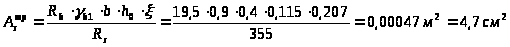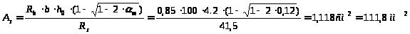 Рассчитывается требуемое количество арматуры в верхней зоне: