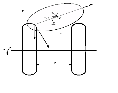 При выполнения условия (6), что клубни не перебрасываются из зоны вибрационного действия роторов, возникает необходимость анализа вероятности ориентирования клубней при действии вибрации. Для проведения анализа принудительного ориентирования клубней исследуем схему действия сил и моментов на клубень при взаимодействии с ротором.