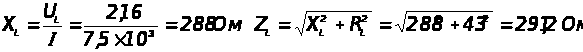 г) Индуктивное сопротивление катушки: X>L>=288 Ом