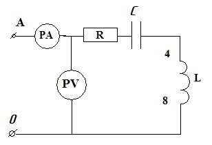где L-катушка индуктивности; R>L>=43 Ом; R-резистор 470 Ом; PA-прибор комбинированный 43101; PV-прибор комбинированный Ц4342.