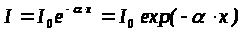 где I>0> и I интенсивность плоской монохроматической световой волны на входе и выходе слоя поглощающего вещества толщиной x, - коэффициент поглощения, зависящий от длины волны света, химической природы и состояния вещества.
