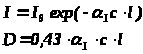 Подставляя (6) в (1) и (5), получаем обобщенный закон Бугера – Ламберта – Бера, учитывающий как толщину слоя поглощающего вещества, так и концентрацию раствора. Этот закон может быть записан либо через интенсивность проходящего света, либо через оптическую плотность:
