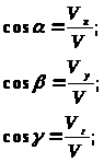 направление вектора скорости определяется с помощью направляющих косинусов, т.е. косинусов углов между вектором скорости и осями координат (рис. 1.6).