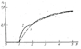 У тому, що це є саме точний нижній кордон, можна переконатися таким чином. Поля, в яких, фізично не реалізовуються, бо інакше порушилося б співвідношення (3.3), яке повинне бути справедливым для всіх без виключення полів. В той же час поля з існують при будь-якому п. Наприклад, поле, в якого відмінні від нуля лише, є саме поле з мінімальною мірою когерентності другого порядку. Відзначимо, що при 0 і, отже, міра когерентності другого порядку може набувати будь-яких позитивних значень. На рис. 3.1 представлені нижній кордон можливих значень g2 згідно (3.2) і точний нижній кордон (3.8) (криві 1 і 2, відповідно).