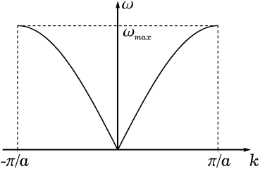 Рис. 1.2. Закон дисперсии колебаний цепочки с одним атомом в примитивной ячейке. |