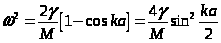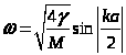 Таким образом, подстановка в виде плоской волны оказалась верной: мы избавились от номера атома n и получили уравнение, связывающее ω и k, то есть уравнение, определяющее закон дисперсии волн.