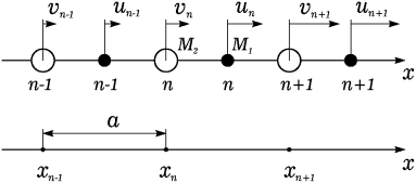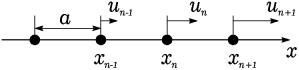 Рассмотрим одномерную периодическую цепочку атомов – одномерный кристалл с одним атомом в элементарной ячейке. Пусть период этой цепочки равен a. Тогда в состоянии равновесия координата n-го атома цепочки x>n> равна na.