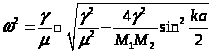 Разделим последнее уравнение на exp(ikx>n>) и воспользуемся тем, что x>n>>+1> = x>n>+a, x>n>>–1> = x>n>–a: –Mω2 = γ(eika+e–ika–2) (9).