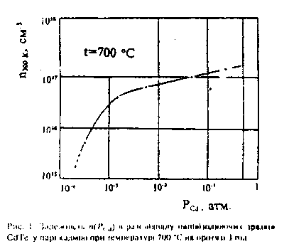 При процесах нестехіометрії на боці кадмію одержуємо матеріал n-типу провідності, на боці телуру – р-типу.