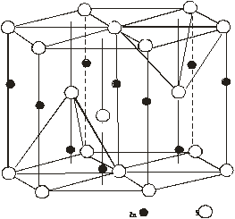 Слід відмітити, що атомами будь-яких ідеальних щільних упаковок простір заповнюється на 74.05%. Т.чином ¼ всього простору упаковки належить пустотам [3]. Розрізняють два види пустот: пустоти оточені чотирьма атомами – тетраедричні , оточені шістьма атомами – октаедричні. Щільноупакованні аніонні решітки мають одну октаедричну і дві тетраедричні порожнини. На рис.2(а,б) і 3(а,б) графічно показано розміщення цих порожнин (дефектів) в елементарній комірці сфалериту і в’юрциту. Із яких видно, що октаедричні пустоти в них не заповнені, а тетраедричні на половину. На основі розрахованої кількості розміщення атомів в елементарній комірці розрахували, що на одну комірку сфалериту припадає 4 октаедричні і 8 тетраедричних порожнин, в’юрциту – 12 тетраедричних, 6 октаедричних. Так як тетраедричні порожнини в цих структурах заповнені наполовино металом, а октаедричні не заповнені, то дефектна підсистема буде утворена тетраедричними і октаедричними кристалічними вакансіями і міжвузловими атомами металу в тетраедричних поржнинах.