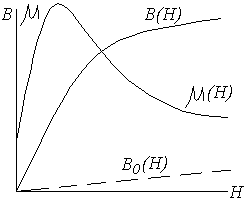 Для ферромагнетиков зависимости B(H), (H) нелинейны.