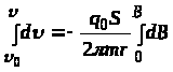 Інтегруємо останній вираз у межах зміни швидкості від >о> до> >, а індукції магнітного поля від 0 до В