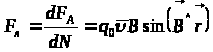 Величину сили Лоренца визначимо, скориставшись силою Ампера