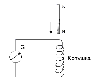 З’єднаємо соленоїд з гальванометром, як це показано на рис.12.7. Якщо постійний магніт вводити в котушку і виводити з котушки, то гальванометр покаже в колі наявність електричного струму. Напрям відхилення стрілки гальванометра змінюється при введенні і виведенні постійного магніту.