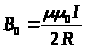 Для індукції та напруженості магнітного поля у центрі колового витка зі струмом одержимо