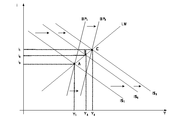 Стимулирующая (дефицитная) фискальная политика осуществляется в период спада производства при значительном уровне безработицы посредством мероприятий, направленных на снижение чистых налогов или на сочетание снижения чистых налогов с увеличением государственных расходов.[13, с. 286-287]