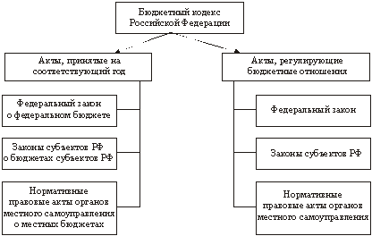 Структура бюджетного законодательства РФ, указанная в ст. 2 БК РФ, связана, прежде всего, с федеративным устройством РФ, а также с существованием в ней системы местного самоуправления. Помимо БК РФ, и принимаемых в соответствии с ним федеральных законов, регулирующих бюджетные правоотношения, в систему бюджетного законодательства РФ включаются нормативно правовые акты и законы, принимаемые на уровне субъектов РФ и муниципальных образований.