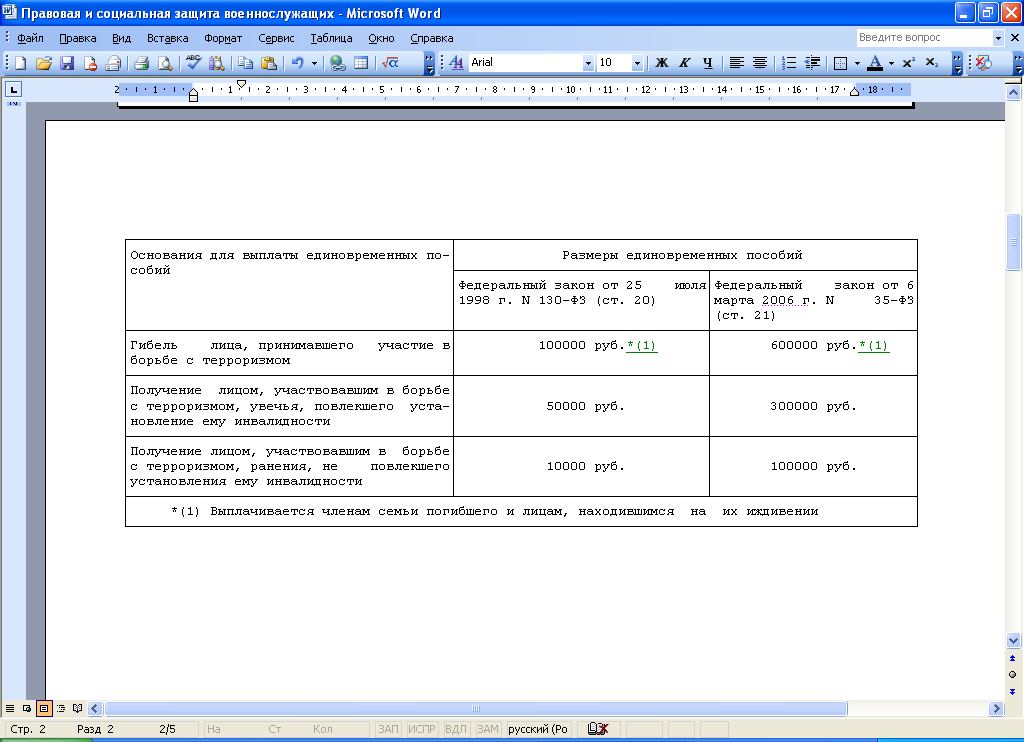 Таким образом, законодательство о социальной защите участников борьбы с терроризмом нуждается в дальнейшем совершенствовании.
