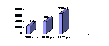 При порівнянні трьох останнього років (2005- 2007) виявлено, що обсяг реалізації збільшився на 70%. Середньорічний темп приросту становить 64%. Для більшої наочності, динаміка реалізації продукції зображена на Плакаті 2.
