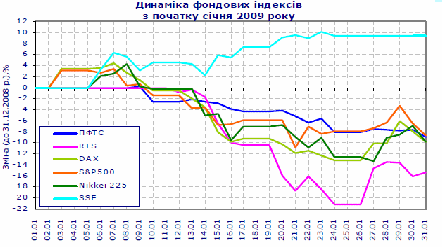 Проблеми грошового та валютного ринків починають проявлятись в повній мірі. Опубліковані звіти НБУ по грошовому і валютному ринках не обнадіюють. Депозити в січні скоротилися на 18,3 млрд. грн., або 5,1%. Груднева стабілізація депозитів пояснювалася переоцінкою валютних депозитів, які скоротилися в доларовому вираженні на 1%, але виросли в перерахунку в гривну на 13,2%. Вже в січні негатив виявився повною мірою: депозити населення скоротилися в гривні (на 3 млрд.) і в інвалюті (на 4,9 млрд. грн.), підприємства скоротили гривневі депозити на 11,9 млрд. грн., і наростили валютні на 1,4 млрд. грн.