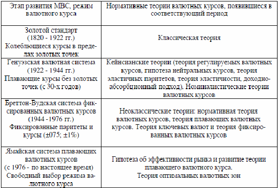 Таблица 1. Развитие МВС и нормативных теорий валютного курса3