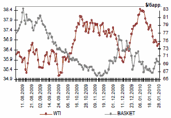 Возможно, ответ стоит искать в динамике фондовых индексов (большую часть периода имел место рост) и слухах (неофициальная информация) о планируемом притоке на развивающиеся рынки (в том числе российский) в первые месяцы наступившего года значительных средств западных фондов. Напомним, что первично аппетит к риску мировых инвесторов «подпитывался» ожиданиями позитивных корпоративных отчетов и непрекращающимися заявлениями/предположениями о том, что ставки в США в течение «длительного времени останутся на низком уровне». Отчетность в целом оказалась неплохой (лучше ожиданий), но конечный эффект оказался «смазанным». Оптимизм инвесторов начал ослабевать в связи с растущими опасениями в отношении отдельных стран Еврозоны (Греция, Испания, Португалия), что существенно усугубило положении евро на forex. На более позднем этапе рынок шокировало предложение Б.Обамы об ужесточении правил по операциям на финансовых рынках для крупнейших банков, а также инициативы Народного Банка Китая в отношении ограничения кредитования.