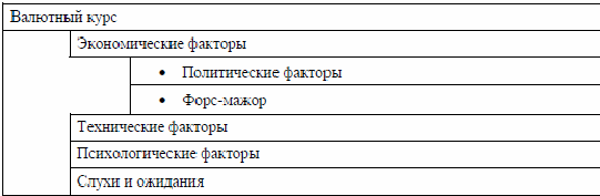Таблица 6. Классификация факторов, влияющих на величину валютного курса