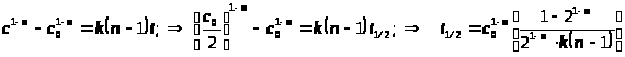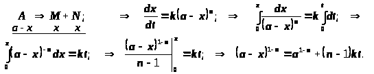 5) Односторонняя реакция произвольного n-го порядка при (с0=a):