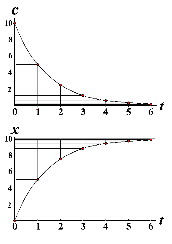 а накопившегося продукта x(t)= c0 - c(t)= c0(1-