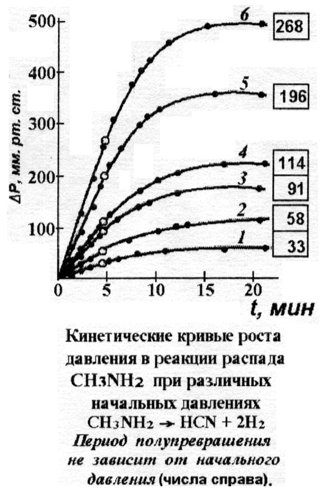 Рис. 3. ... у реакции 1-го порядка t>1/2 >не зависит от исходного содержания реагента в системе.