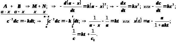 3) Односторонняя реакция 2-го порядка и её стехиметрическое уравнение: