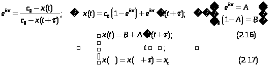 Преобразуем (2.13) к виду e-kt =1- [x(t)/ c0]. (2.14)