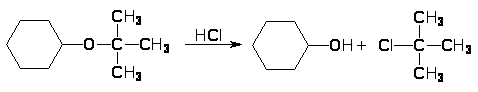 Особенно склонны к расщеплению третичные аллильные и бензильные эфиры. Третичный бутиловый эфир расщепляется соляной кислотой при обычной температуре по механизму S>N>1: