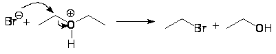 Кислотное расщепление простых эфиров следует рассматривать как типичный случай реакции нуклеофильного замещения у насыщенного атома углерода. В зависимости от природы алкильных групп, связанных с кислородом, реализуется S>N>2- или S>N>1-механизм. Для расщепления требуются сильные кислоты и хорошие нуклеофилы HI (57%) и HBr (48%). Конц. HCl (38%) наименее эффективна потому что Cl- в воде является более слабым нуклеофилом, чем Br- и I-.