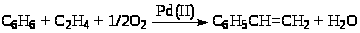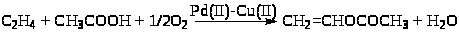 была открыта в МИТХТ им. Ломоносова в 1960 г. Реакция осуществляется в растворах солей PdCl>2>-CuCl>2> и Cu(OAc)>2> в уксусной кислоте в присутствии NaOAc. Температура процесса 110 – 130оС и давление 3.0 – 4.0 МПа. Селективность по этилену – 83%. Кинетическое уравнение получено Моисеевым и Беловым в системе, не содержащей CuCl>2> (16)