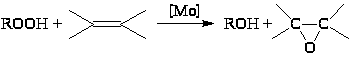 Халкон-процесс. Эпоксидирование олефинов гидропероксидами осуществляется в промышленном варианте в растворах комплексов Mo(VI). В качестве ROOH используют 2-этилфенилгидропероксид (гидропероксид этилбензола, ГПЭБ), гидропероксид кумила (ГПК) и третбутилгидропероксид (ТБГП). В случае ГПЭБ сопряженно с пропиленоксидом получают стирол: