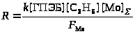 где FMo = 1 + KГПЭБ[ГПЭБ] + KМФК[МФК] + KОП[ОП] + KH3O[H3O] есть закомплексованность катализатора, МФК – метилфенилкарбинол, ОП – пропиленоксид. Ki – константы равновесия образования соответствующих комплексов Mo. Как видно из уравнения (20), процесс протекает с лимитирующей стадией, переходное состояние которой включает ГПЭБ, Mo(VI) и пропилен. Показано, что активным катализатором является пропиленгликолятный комплекс Mo(VI), реакция которого с ГПЭБ и C3H6 приводит к ОП.