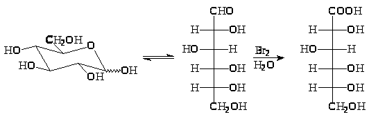 При окислении альдоз такими слабыми окислителями как бромная вода, окислению подвергается только альдегидная группа и образуются альдоновые кислоты.