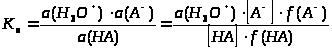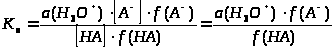 Важно заметить, что константы диссоциации, определенные этим способом, отличаются от констант, приводимых в таблицах, поскольку последние включают активности, в то время как первые – концентрации. Так, если мы запишем выражение для константы диссоциации в более точном виде, то получим