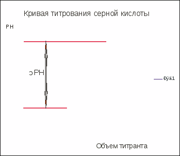 На рисунке 5.1 приведена кривая чернового титрования серной кислоты гидроксидом натрия. По кривой титрования мы можем оценить величину скачка титрования и вычислить необходимые концентрации.
